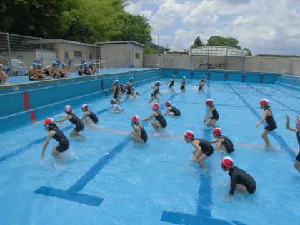 12日(水),低学年の水遊びがスタートしました。1年生は入学して初めての水遊びでした。昨年を経験している2年生が,準備や並び方のお手本となり,1年生も一生懸命ルールを守り,安全に楽しく学習を進めようと頑張っていました。