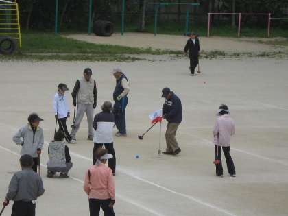 朝から,地域のみなさんが,グラウンドゴルフをしておられます