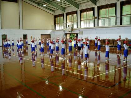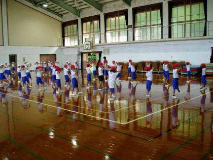 低学年(1・2年生)の子どもたちは,体育館でダンスの練習中です。