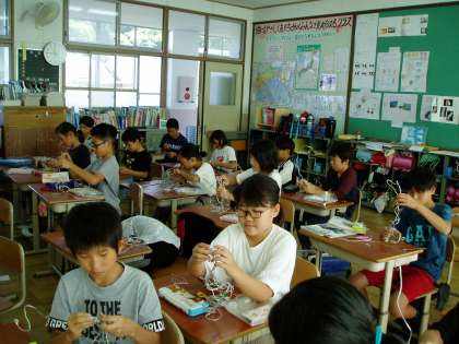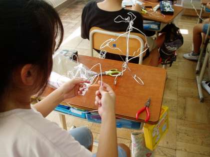 今日は,アルミ製の針金を使って造形活動をしています。この学習では,美しさやバランスを考えた立て方や飾り方を工夫して表現することを目標にしています。