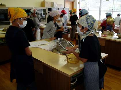 今日はガラス製で透明な鍋でご飯を炊いたり,グループで考えたみそ汁を作ったりしました。具材を食べやすい大きさに切ったり,みそで味を付けたりすることに苦労はしましたが,よい体験的な学習ができました。