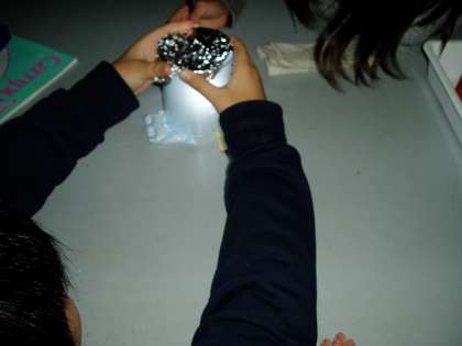 4年生は理科室で,空気のあたたまり方を実験中です。