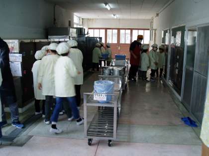 今日の給食は『コッペパン(国内小麦100%)』『牛乳』『だいこんのクリームシチュー』『ひじきのソテー』でした。