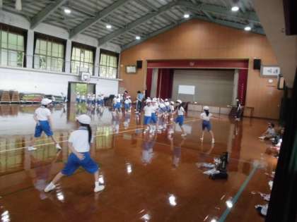 低学年(1・2年生)の子どもたちは,体育館で体育の授業中です。