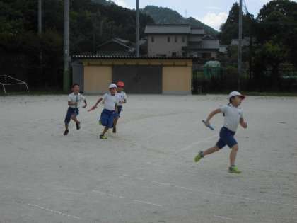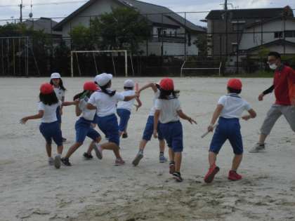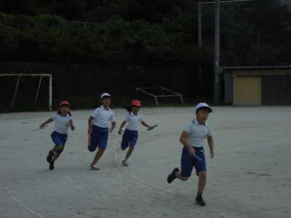 3年生は,体育参観日に行う『全員リレー』の練習中です。グループに分かれて,走る順番を自分たちで相談し,一生懸命に取り組んでいます。