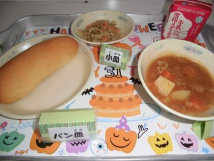 今日の給食は『ミルクコッペパン』『牛乳』『ブラウンシチュー』『ごぼうのソテー』というメニューでした。