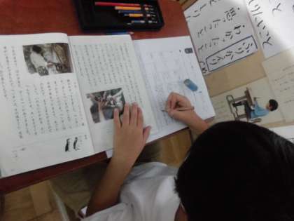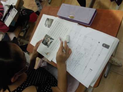 今日は,その説明文を読みながら,獣医の仕事の内容や工夫を読み取り,プリントに書き抜いています。子どもたちは,動物が大好きなので,興味をもって読むことが出来ているようです。