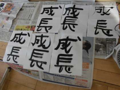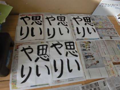 6年生は『思いやり』,5年生は『成長』という文字を練習していました。文字の形や大きさ,書き順に気を付けて,丁寧に書いています。