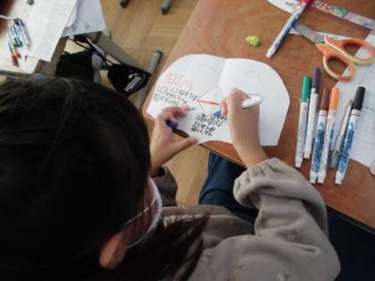 2年生は,生活科の学習で1年生を招いて,一緒に活動する『あそびの会』を計画しています。今日は,その『あそびの会』に1年生をお誘いする招待状を作成しています。