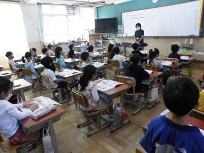 訓練終了後,子どもたちは各教室で,一人一人が静かにして放送をよく聞くことと,どうするべきか自分で考えて行動することが大切だとの学校長の話を放送で聞きました。担任とともに自分たちの行動をふりかえり,もしものときの自分の身の守り方について考えることができました。