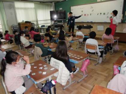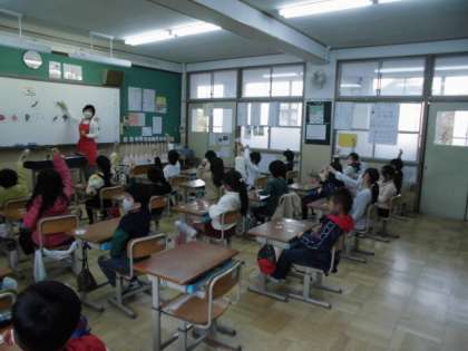 2年生の教室では,ゲスト・ティーチャーを招いて外国語の学習中です。