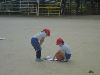 子どもたちは,カードを確かめながら,いろいろな動きに挑戦しています。