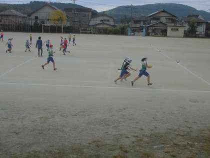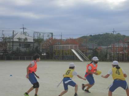 6年生は体育科の学習で『タグ・ラグビー』を始めました。