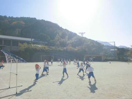 子どもたちは,ルールが分かると体を十分に動かしてゲームに熱中しています。
