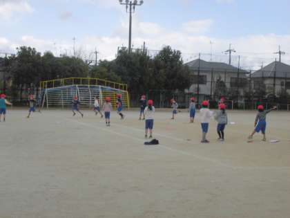 3年生は,運動場で体育科の学習中です。