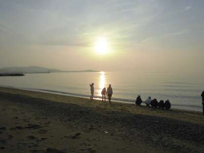 いったん部屋に入り,荷物を整理した後に,夕日百景にも数えられる松林や海岸を散策しました。