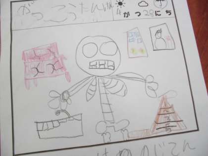 学校探検で見つけたものを、「見つけたよカード」に書きました。みんなのかわいい発見を見ていると、学校探検は楽しかったんだなあと、うれしく思いました。学校はいろいろなものがあって、おもしろいね。北醍醐小学校には少し慣れたかな!?