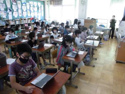 4年生は理科の学習で植物の観察をした結果を交流しています。
