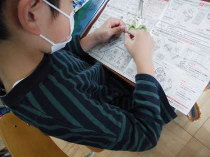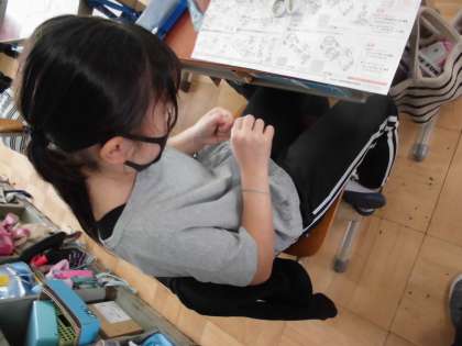 今日は,まず実験をする準備です。子どもたちは,エナメル線の両端のエナメル部分を剥がす作業に一苦労中です。