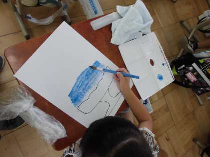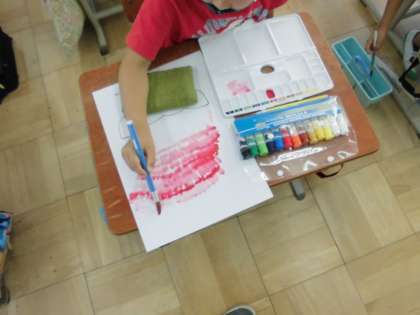 2年生は図画工作科の学習で,はじめて水彩絵具を使いました。準備の仕方,用具の使い方,後片付けの仕方など,覚えることがたくさんあります。