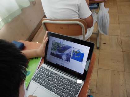 子どもたちは,GIGA端末でアメダスを検索し,台風時の天気の移り変わりを調べようとしています。