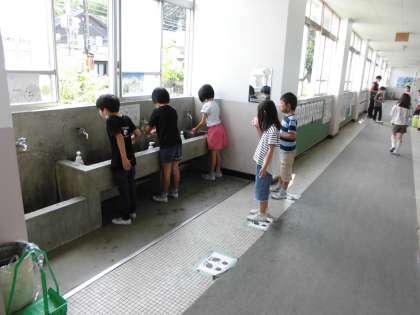 3年生は金曜日の朝に『フッ化物洗口』に実施しています。