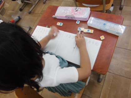 いよいよひき算の学習が始まりました。いつものように、1年生の最強アイテム「数図ブロック」を使って、学習を進めていきます。実はこの、数図ブロックを使った操作活動がとっても大切なのです。「数が増えたらたし算」、「数が減ったらひき算」ということを、ブロックを動かしながら何度も確認して学習を進めていきます。子どもが苦手と言われる文章問題。1年生は、簡単な文章問題も、ブロックの操作活動を大切にして取り組んでいきます。