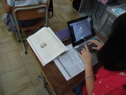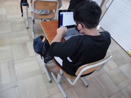 今日は端末の機能を使って,その報告文の下書きをしています。ローマ字表を見ながら,キーボード入力をする姿も見られます。よく頑張っています。