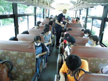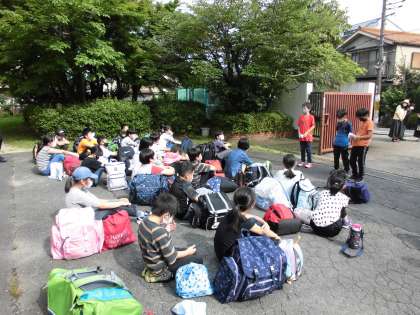 出発式を行い,バスに乗車し山の家に向けて出発しました。予定よりも早めに到着し入所式を行いました。とても過ごし良い天候です。