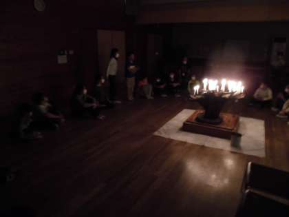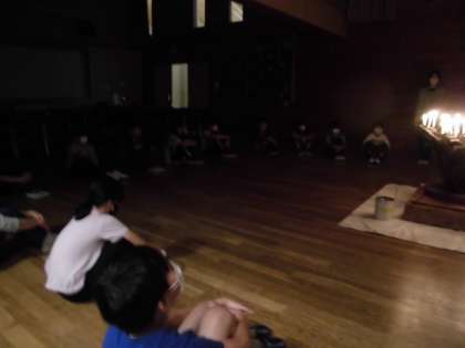 1日目(7月13日)の夜は,天候が思わしくないので,室内でキャンドルファイヤーを楽しみました。レクリエーション係の子どもたちが,司会や進行を務めて楽しいひと時を過ごしました。