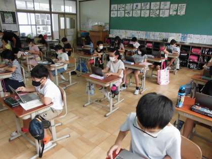 3年生の子どもたちは,国語科の学習でGIGA端末を使っています。