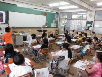 今日は,日本のおかし(月見だんごなど)を切り口にして『日本のよさ』を知る学習をしました。