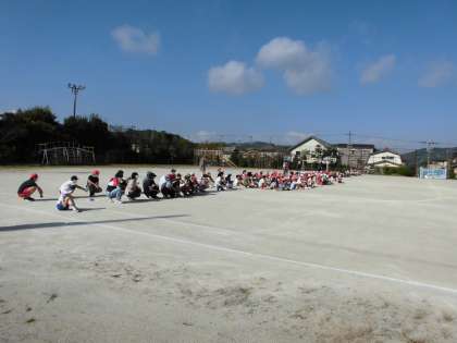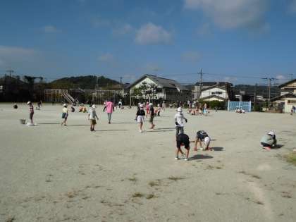 今日の1時間目,来週の運動会に向けて全校児童で運動場の草を引いたり,石を拾ったりしました。