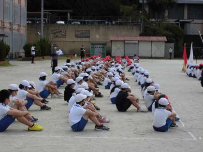 10月7日(木)の1時間目,運動会に向けての全校練習を実施しました。