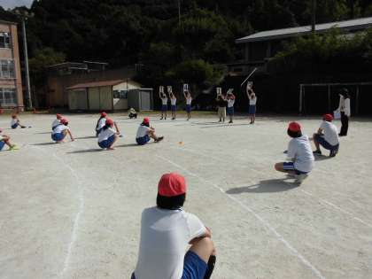 今年度の運動会では,縦割り種目を『リレー』と『玉入れ』にしました。グループは低学年と高学年でチームをつくります。