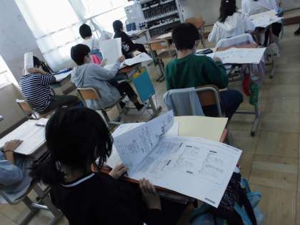 各教室では,担任と一緒に問題を見直しながら『ふりかえり』をしています。個別の課題を把握し,次のステップにつなげていきます。