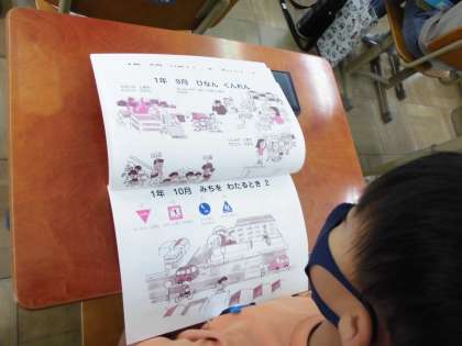 今回は,理科室から出火し防火扉が閉まっている中を避難する訓練をしました。担任が,防火扉を押さえて閉まらないようにしている中を子どもたちが避難をしています。