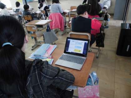 子どもたちは,GIGA端末を使いロイロノートで自らの考えを書き始めました。