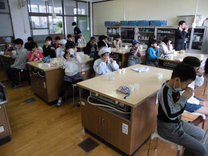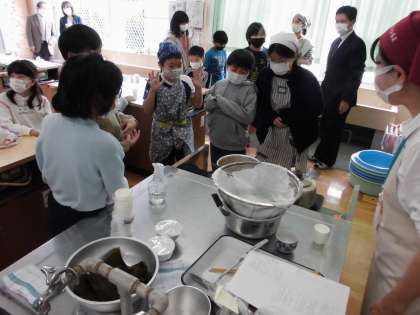 5年生は家庭科の学習で『出汁の取り方』を学んでいます。