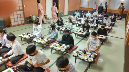 6年生は,宿泊地の「なごや花亭美よし」に到着し,おいしい夕食をいただきました。