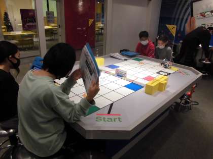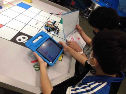 どんどん難しくなる指令を友だちと相談しながらプログラミングし,模型の自動車を想定した通りに走らせることに挑戦しました。