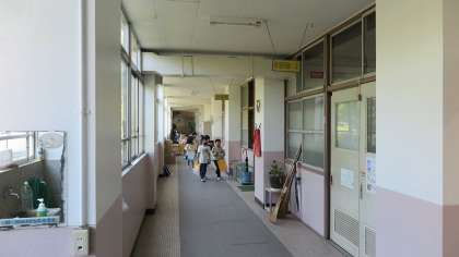 生活科の学習で1・2年生が,合同で学校探検をしました。