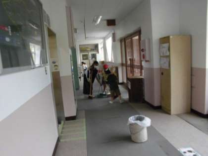 1年生もいよいよ今日から、そうじの時間がスタートしました。朝の会で、道具の使い方やそうじの分担場所の説明をし、やる気十分になったみんな。昼休み後に「そうじデビュー」を果たしました。しばらくは6年生と一緒にそうじをすることもうれしい1年生でした。お兄さん・お姉さんに教えてもらいながら、教室も廊下もピカピカにしようね。