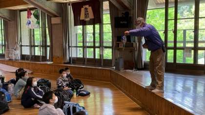 入所式では北醍醐小学校の旗を掲揚し所員の先生の話をしっかりと聞いていました。