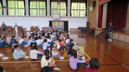 中間休みに令和4年度の部活動開校式が行われました。北醍醐小学校では,放課後に4年生以上の児童が体育館でのバレーボール,バスケットボール,卓球と運動場の総合運動の中から3つのスポーツを選んで活動することができます。学校の先生と地域の方にコーチとして指導してもらいながら,スポーツの楽しさを味わい,社会性や規範意識を高めます。できるだけ休まず活動を続けてほしいと思います。