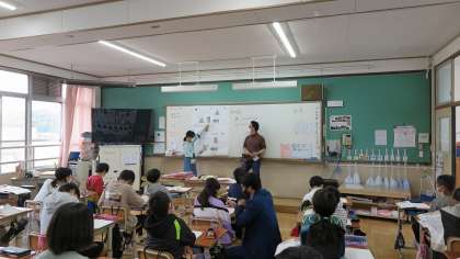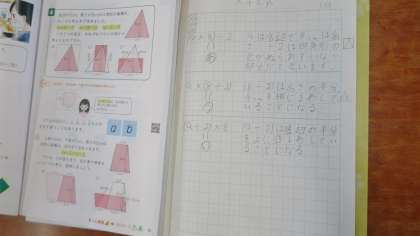 6年生は,算数科で文字式を学習しています。今日は,文字を使った式から三角形や台形の面積をどのように考えて求めているかを読み取り,説明する学習でした。大変難しい学習ですが,最後まで集中して学習に取り組む姿は,さすが6年生です。ノートに自分の考えをしっかりと書くことができていました。