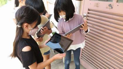 4年生は,理科で季節と生き物の学習をしています。今日は,自分たちが観察する木を決め,GIGA端末のカメラ機能を使って記録をました。対象の植物や生き物がどのように変化していくのか楽しみですね。