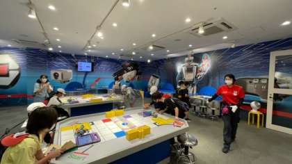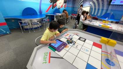 パーク内を散策した後、レゴランドラボでプログラミング学習を行いました。スクラッチを使ってロボットを動かすためのプログラミングを作りました。短い時間でしたが友達と相談しながらロボットを自由自在に動かす事ができました。