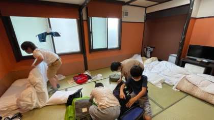 名古屋は少し雨が降っていますが、活動には影響ないと思われます。みんな元気にしています。8時からの朝食まで荷物や部屋の整理に追われている班もあれば早く片付きゆったりしている班もありました。