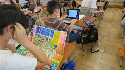 6年生は,先週に行った修学旅行の振返りをしていました。楽しかった思い出を写真や友達との会話で振返り,GIGA端末にまとめる作業をしていました。また,修学旅行で確認した今後の課題についても一人一人がしっかりと考えている様子でした。学校での最高学年としての活躍に期待しています。